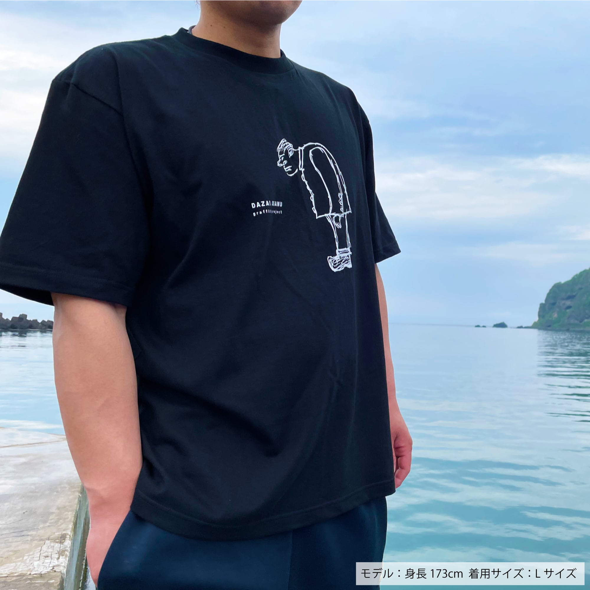 文豪・太宰治が高校時代に残した直筆イラストを、大胆に配置したビッグシルエットTシャツです。